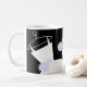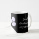 Söt möhippa mugg i skuggor av lila med en stiliserad bröllop och blommor i svart bakgrund. Ett anpassade som du kan anpassa med egen text, bilder och egna idéer. Artwork skapat av Jess Perry.