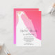 En brud i hennes skugga och slöja på en övertoningsbakgrund i shock rosa är perfekt för bröllop inbjudningskort för möhippa. MER färg i vår samling.