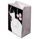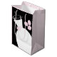 Söt möhippa: presentsäck i skuggor av rosa med en stiliserad bröllop-gryna och blommor på svart bakgrund. Ett anpassade som du kan anpassa med egen text, bilder och egna idéer.