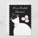 Söt inbjudningskort för möhippan med en stiliserad bröllop-gryna och blommor i skuggor av rosa och vitt på svart bakgrund samt vit och rosa text. Ett anpassade som du kan anpassa med egen text, bilder och egna idéer.