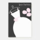 Möhippa: "post-it"-anteckningar med söt i nyans, svartvitt och rosa med stiliserad bröllop-klänning på en hanger tillsammans med en blombukett. Ett anpassade som du kan anpassa med egen text, bilder och egna idéer.