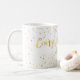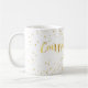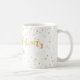 Söt guld-effekten prickad mönster bakom ord Grattisar. Klicka på "anpassa den" om du vill ändra namn längst fram i mugg.