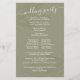 Ett enkelt ceremoniprogram i Bröllop, papper lakan-mall. Denna botaniska elegant-grönt, ett minimalistiskt program med ett enkelt kalligrafi-skript är perfekt för vilket badbröllop som helst, med elegant handflatan löv.