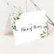 Detta gröna vita blommiga tackkort för bröllopsfesten är perfekt för ett rustikt bröllop. Designen har eleganta akvarell vita peonior med grön lövverk.