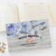 Bröllop Guestbook Template - Elegant Blue Watercolor Natural Boho Flowers on Rustic White Wood Background. En Perfekt för din stora dag! Alla textstorlekar i Stil, Färg kan anpassas efter dina behov.