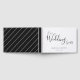 Den här bröllop-gästboken har en snyggt och minimal design i svartvitt accentuerad med elegant handskriven stil-kalligrafi. Med anpassningsbar kan du lägga till namnen för paret och dess datum i bröllop. Baksidan är svart med ett diagonalt vitt rand mönster.