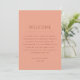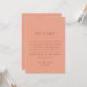 Sätt tonen för din bröllomshöst med detta vackert designade tidsschema i en delikat persikofärg. Dess subtila och inbjudande färg kompletterar ren, modern typografi och ger en tidlös men fräsch estetik. Perfekt för alla årstider. Detta kort visar genomtänkt alla viktiga ögonblick under din fest, vilket hjälper gästerna att hålla sig informerade och engagerade. Oavsett om din stil är rustik charm, bohemisk elegans, romantisk mjukhet eller trädgårdsinspirerad grace, är detta tidsschemakort en perfekt passform. Använd detta kort för att varmt välkomna dina nära och kära. Välj mellan en tryckt version eller en digital nedladdning för att passa dina behov.