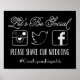 Låt oss Be Social Bröllop Hashtag-skylt på färg efter eget val. Hjälp till att hämta foton från alla dina gäster på din stora dag genom att använda den här hashtaggen i bröllop. Du kan ändra storlek och papper text och den ser underbar ut som den är eller ramad.