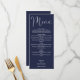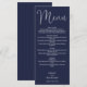 Bröllop-menyn för marint blått elegant kan vara personlig med all speciell bröllopsdag-meny, namn och speciellt datum. Designad av Thisisnotme©