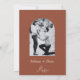 Meddela din fest med högklassig stil med denna minimalistiska fotoinbjudan "Bränt orange bröllop". Specialdesignad för en sofistikerad, boho-inspirerad estetik, har detta kort en varm jordnära palett i kombination med ren, modern typografi och en generös layout för ditt favoritporträtt från förlovningen. Mer än bara ett kort, fungerar det som ett premium, själsfullt första intryck som gör din meddelse till en högkvalitativ, hantverksmässig upplevelse. Klicka helt enkelt på "Personalisera" för att ladda upp din bild och lägga till dina evenemangsuppgifter, för att säkerställa att du ger ett polerat, professionellt och romantiskt intryck på varje gäst från det ögonblick de öppnar kuvertet.