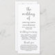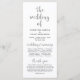 Modern Bröllop Ceremonisekort i 4 x 9 tum (lång) kort. Det är designat med rullans accenttecken som kan vara personlig med anpassningsbar/ personlig för din bröllopsfest, information om ceremonier, minnesanteckningar och tack för ditt budskap. Om du är tittar för andra programkortstyper och -storlekar, sök igenom vårt matchande programkortinsamlingsavsnitt.