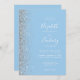 Den här elegantens lämnat kant har en modern bröllopsinbjudan i silver i glitter. Anpassadet kombinerar vit handskrift, tryckplåt och kursivt typsnitt mot baby blue bakgrund. Den omvända sidan ger plats för bröllop-information på en solid baby blue bakgrund, tillsammans med en QR-kodgäst som kan söka på din webbplats och OSA, vilket sparar kostnaderna för utskrift och utskick av separat OSA kort.