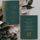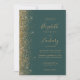 Den här elegantens lämnat kant har en modern bröllopsinbjudan i guld i glitter. Anpassadet kombinerar handskrift, rityta och kursivt typsnitt med guld-färgad mot en mörk grönt bakgrund. Den omvända sidan ger plats för bröllop-information på en solid mörk grönt bakgrund, tillsammans med en QR-kodgäst som kan söka på din webbplats och OSA, vilket sparar kostnaderna för utskrift och utskick av separat OSA kort.