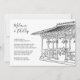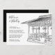 Lätt att anpassa bröllopsmall. Svart och vit destination bröllop New York City, Central Park Ladies Pavilion lusthus bröllopsceremoni inbjudan. Linjekonst av bröllopslusthuset beläget nära sjön på övre västra sidan av Central Park i hjärtat av NYC.