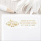 Bröllop i Las Vegas Logga in faux-guld-returadress-klistermärken för ett elegant vegas-målbröllop. DESIGN TIP: Klicka PÅ ANPASSA YTTERLIGARE om du vill ändra bakgrunden till färg och typsnitt så att den matchar ditt färg-schema! Besök vår Zazzle Designer Shop för samordning av artiklar för bröllopsdag och dekorering.