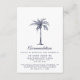 Ge dina gäster all din inkvartering i bröllop eller annan relevant information med det här eleganten-kortet som innehåller ett modernt skript och marinblått text, inklusive ett konstnärligt handflatan träd. En koordinerande blå bakgrund i marinen finns på kortets baksida. Perfekt för en strand eller en plats utanför bröllop. Kontakta mig om du behöver hjälp eller anpassningsbar.