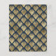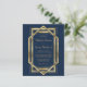Denna eleganta vintageinspirerade bröllopsinbjudan har guldfärgad text på en marinblå bakgrund, infattad i en geometrisk vintage art deco-design. Ett koordinerande guld- och marinblått art deco-fläktsmönster pryder baksidan av kortet.