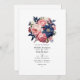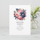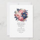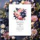 Bröllopbjudan till marinen och blommigt. QR-koden på andra sidan går till din bröllop-webbplats där människor kan lära sig mer och osa.
