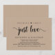 Vacker Inget Tjälligt Bara Kärlek-fest, Bröllopsannonserings- / Inbjudningskort, i modern rustic brun kraftdesign. Detta är perfekt för din bröllopsfest och efterbröllopsfirande. Lägg till dina detaljer i matchande typsnitt / bokstäver.