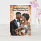 Bröllop-kort för personlig Grattisar | Afrikas amerikanska par firar sin vackra union med det här bröllop-kortet i personlig med ett elegant afrikanskt par. Lägg till deras namn eller ett hjärtligt budskap för ett sakens skull.. de kommer att uppskatta på sin speciella dag och därutöver. Perfekt för att ha gratulerat paret lycklig med kärlek och glädje! Front Sentiment: "Grattisar på din Bröllopsdag!" Inuti meddelandet: Må dina liv tillsammans fyllas med gränslös kärlek, glädje och oändlig lycka. Här är för evigt delade drömmar, skratt och omhuldade minnen. Grattisar på den här underbara resan som du börjar tillsammans! #weddingcard #weddingGratulationer #personalizedbröllop #AfricanAmericanCouple #firatelove #brideandgroom #specialday #weddingkeepsak #ZazzleWedding #lyckybröllop #foreverlove #foreverlove