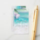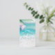 Beach Wedding Theme. Vackert mousserande klart hav vatten som i solljuset, vitt skum vatten på den rena sandstranden med en handflatan-frond och ljus rosa blomma på hörnets Avslappnad eller formella sida, för ett strandbröllop eller destinationsö bröllop - Detta är en del av en komplett bröllop-svit med komplementär bröllop-stationär på The Barefoot Bride http://zazzle.com/TheBarefootBride