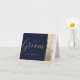 De här eleganterna är ett modernt, hopfällt anteckningskort i marinen och faux-folie i guld är perfekt för att lämna ett speciellt budskap till din grupp på bröllopsdagen. Skriva något speciellt och skapa perfekten för sakens skull! Utformningstips: Om du ändrar texten användor du brev med versaler till behålla med samma utseende. Uppgradera pappra lagrar för att göra det ännu mer finare! Kontakta oss på beachdivasdesign@gmail.com om du vill ha frågor