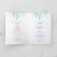 Bröllop lila grönt blommor som överlappar vattenfärgsbildens vikna program. Dessa ceremoniprogram i bröllop är en del av matchande kaskadblommor i vattenfärgen möhippa bröllop. Originalfärgskonstens målning och design efter artist och designer Sarah Trett för www.mylittleedenweddings.com på zazzle.