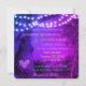 En mycket söt bröllopsinbjudan med lila färg och ett träd med sträng ljus. Designad av Amelia Carrie.