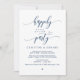 Vacker Modern Klassisk Marinblå Kalligrafi, Bröllopsannonsering, Inbjudningskort (Lycklig För Evigt Fest). Detta är perfekt för din bröllopsmottagning och efterbröllopsfirande. Lägg till dina detaljer i matchande typsnitt / bokstäver.