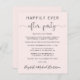 Ett budgetvänligt ljust rosa utspel eller ett litet bröllop-meddelande med en bröllopsmottagning eller en inbjudan till firande-parti. Framsidan har "Lyckligtvis alltsedan Party" i en blandning av enkel modern typografi och ett elegant-skript med dekorationer. Anpassa ditt budskap och din inbjudan mer detaljerat och ditt namn i ett namnteckning skript. Den omvända funktionen har ditt första datum namn och bröllop.