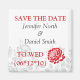 Besök ArtisticPostage. Dessa Spara datum-magnetmallar kan enkelt anpassas eller personifieras av det lyckliga paret. Anpassningsalternativ inkluderar foton, bilder, ett monogram eller monogram, och/eller namnen på bruden och brudgummen.