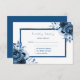 En elegant OSA kort för ett bröllop med svarsmallar per datum och namn. Ett faux silver och klassisk blå ram med vattenfärgade blommor, ro i blå nyanser. En vit chic, blå text framtill. Bakåt: klassisk blå bakgrund, vit brev.