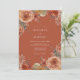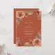 Denna design har en rik bränd orange bakgrund prydd med måleriska blommor i nyanser av korall och persika. Ömtåliga blommor och lövverk skapar en varm, romantisk atmosfär, perfekt för en höstlig eller bohemisk fest. Konsten frammanar en känsla av rustik elegans.