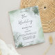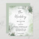 Sagegrön bröllopstema. Designen har en vacker, handmålad akvarellillustration i nyanser av smaragd och sagegrön med guldglittrande folie stänk höjdpunkter - Handskriven script kalligrafi kombineras med ett minimalistiskt, modernt typsnitt.