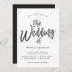 En unik bröllopsinbjudan med dansande typsnitt följt av din unika bröllopsdagsinformation i svart och vitt.