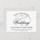 Med den här enkla eleganten Spara datumkortet i förväg för dina gäster om ditt kommande bröllop. Kortet är vitt med svart text på framsidan. Kortets baksida är en blek grått färg. Utformningen har ett skript med finare lacy-typsnitt.