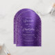Denna eleganta, bågformade moderna bröllopsinbjudan har lila falska glitter sidoborder. Den anpassningsbara texten kombinerar vit handskrift, kopparplåt och kursiv stil på en lila falsk borstad metallbakgrund. Baksidan har en matchande glitter- och borstad metalldesign.