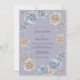 Mjuka blommor i periwinkle, dämpad blå och krämig beige skapar en eterisk, romantisk kant. Diskret grönska tillför djup till denna botaniska komposition och frammanar en lugn och elegant atmosfär för en särskild tillställning.