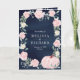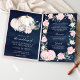Bröllop med rosa blommig pumpa QR-kod och marinblå Inbjudan
