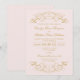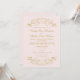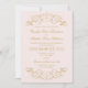 En romantisk porträttbröllopsinbjudan med förgyllda utsmyckningar i form av scrollor på en mjuk rosa bakgrund. Den varma metalliska filigranen mot den ömtåliga rosa färgen skapar en feminin, elegant look med klassisk kalligrafi och strukturerad datuminformation. All text är helt anpassningsbar.