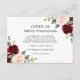 Bröllop med rosé och burgunderfärgade blommor COVID-19-säkerhet Infogningskort