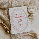 Bröllopskort inspirerat av vintage, med en fantastisk ovalformad illustration av en rosenskär spetsram och en ängel. Med klassisk kalligrafi i en klarröd nyans.