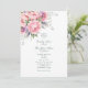 Denna rosenskiftande och vattenfärg-floral bröllopsinbjudan är traditionell och elegant. Dessa färger med en antydan till lila är trendiga för vår, sommar och höst. Det enkla skriptet är klassiskt i smaragdgrönt.