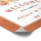 Tropiskt torkat handflatan-löv, pampasgräs och proteablommor teracotta odlar botaniskt välkomna bröllop poster. Den här fina bröllop-designen har ram på terracotta-nedfläckadens bakgrund. I ram finns er text, en bukett av torkade löv från handflatan, proteablommor och pampasgräs.
