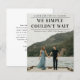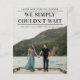 En tidig bröllopsannonsering med rubriken Vi kunde helt enkelt inte vänta. Ett bra sätt att låta nära och kära veta att ni har gift er. Baksidan tillåter ett personligt meddelande till vänner och familj eller kan tas bort om så önskas.