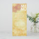 Bröllop Food Menu "Asian Influenced Golds" Lättfärgad bakgrund av gult, guld och magenta överlappad med pennerade fåglar och mjuka blommor av färgad. Anpassa den här tvåsidiga matmenyn i bröllop. Ta helt enkelt bort text på båda sidor om menykortet och ersätt med ditt eget ord. Välj ditt favoritteckensnitt stil, färg och storlekt. Flower inslag kan flyttat, raderas och/eller justeras! Tack för att du stannade och shoppade förbi! Mycket uppskattat! Lycklig Bröllopsdag! Stil: 4 tum x 9 tum utskrivet på lagrar med 100 lb vitt kort med glans avslutar högkvalitativ utskrift av fullt-färg och fullt