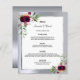 Bröllop Menu blommigtar burgundy silver elegant