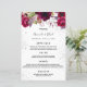Bröllop Menu blommigtar vit burgundy lila glitter