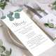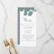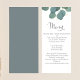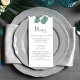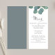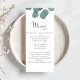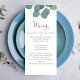 Vackert, kultiverat bröllop-eucalyptus-menykort. med kalligrafi-skript, simpel eucalyptus greenery och grönt foliage, perfekt för bröllopsmottagningsdekoder