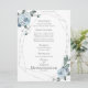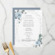 Bröllop Menu | Dusty Blue-Blommigt för vattenfärg Meny